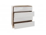 Комод Нордик отличается универсальным современным дизайном. Природная геометрия элементов создаст ощущение легкого и незагруженного пространства. Сочетание декоров натурального дерева и белого цвета подчеркнет современный стиль Вашего интерьера.