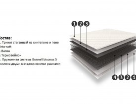 Состав: ППУ h 14 см (эрголатекс), бязь стеганная на 100 г. синтепона
