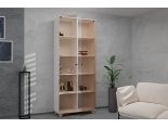 Данный шкаф станет отличным функциональным дополнением и впишется в любой дизайн гостиной. На полках достаточно места для хранения любимых книг, вещей, а также предметов декора. Дверки из стекла предотвратят от падения ценные хрупкие вещи. Петли с доводчиками обеспечат плавное безопасное закрывание. Отсутствие ручек позволит избежать случайных задеваний и резких открываний дверок. Ножки, выполненные из массива дерева, имеют регулировку по высоте. Возможен выбор цвета корпуса в соответствии с обстановкой гостиного помещения.