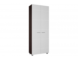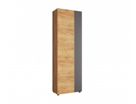 Комбинированный фасад состоит из ЛДСП 16мм с горизонтальным расположением текстуры цвета корпуса и МДФ 16 мм с калевкой по периметру (аналог фрезеровки МЫЛО). В шкафу сверху располагается полка/вязка, к низу которой крепиться выдвижная штанга длиной 250 мм.