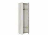Высота от крышки шкафа до верха полки 340 мм. Высота под хранение одежды от штанги до верха крышки 1600 мм. В комплекте фурнитуры имеется навес с декоративной накладкой, с помощью которого шкаф необходимо крепить к стене для предотвращения его падения из-за компактной глубины. Опоры – американка черного цвета с регулировкой до 10 мм по высоте.