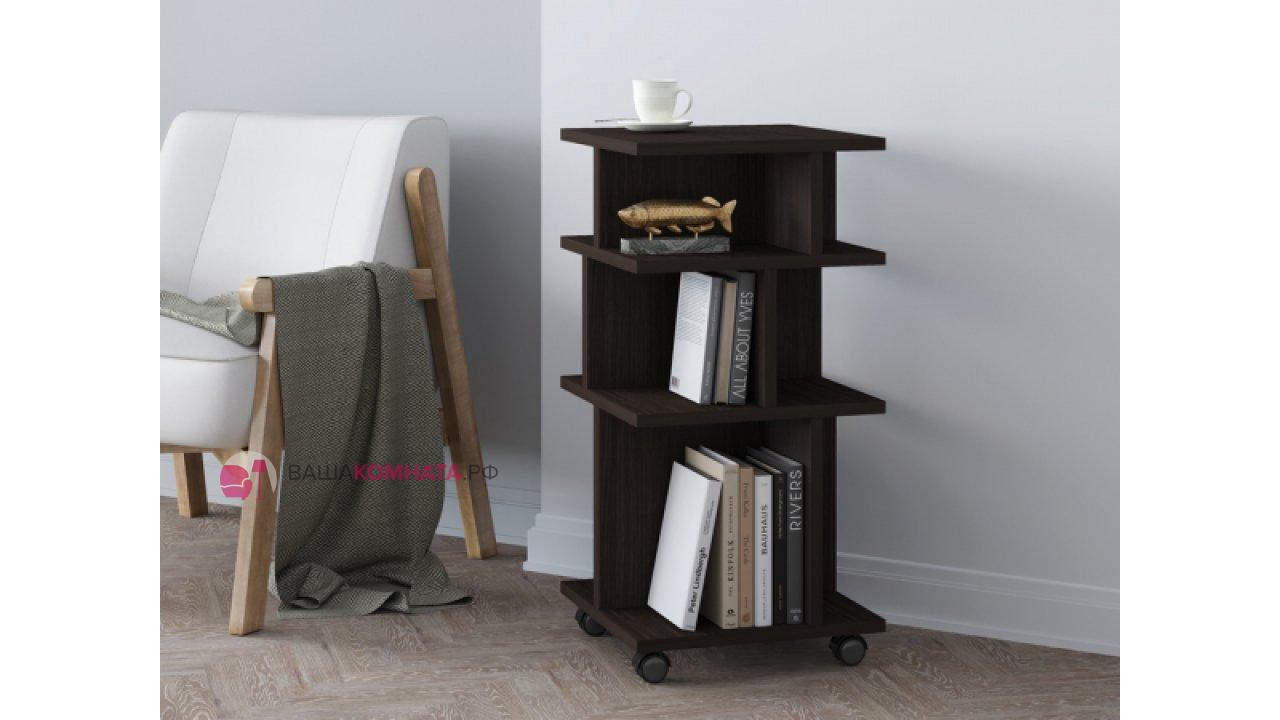 Колесики позволяют легко передвигать стеллаж, благодаря чему он может использоваться в качестве сервировочного или столика для чаепития.