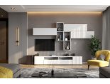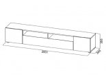 Тумба имеет 2 распашные створки и одну барную створку посередине. Секция с барной створкой разделена перегородкой. Над барной створкой располагается две открытые ниши.