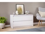 Лицевая фурнитура на тумбе отсутствует. Ящики открываются с помощью захвата рукой.