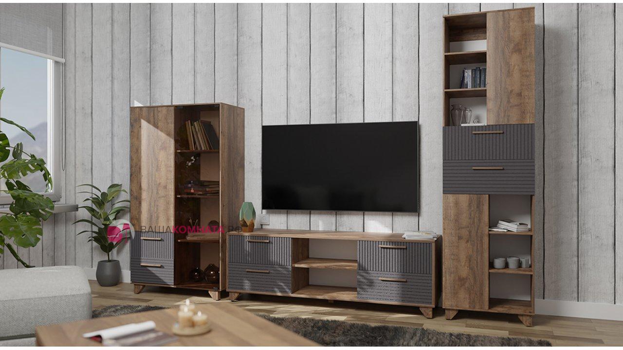 Тумба под ТВ "Копенгаген" с нишей SL - Дуб Самдал / Серый графит SL