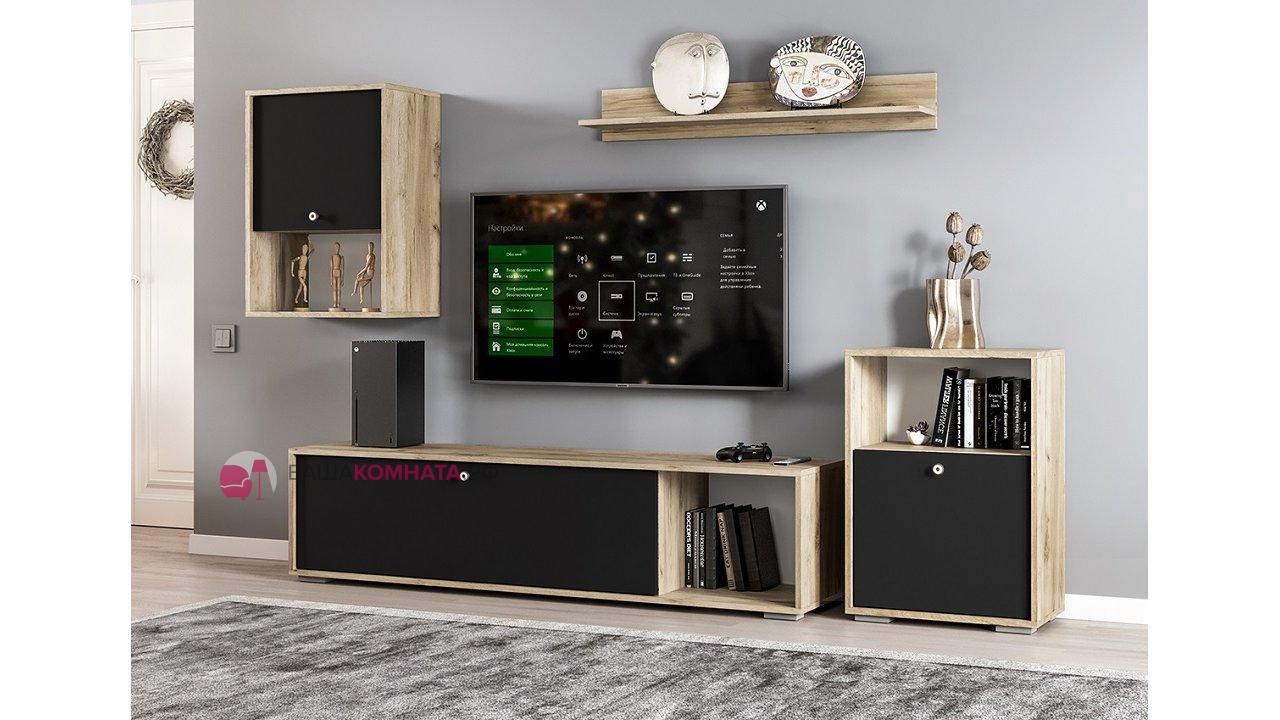 Тумба под ТВ "Нанси" ТБ-1600 SL - Дуб крафт серый / Черный софт